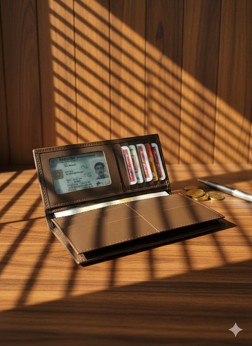 Inside, the Jaraan LuxeSlate wallet includes multiple compartments for cards, cash, receipts, and IDs, keeping all your essentials neatly organized and easily accessible. Designed for both practicality and visual appeal, it reflects the signature quality and craftsmanship of Jaraan.