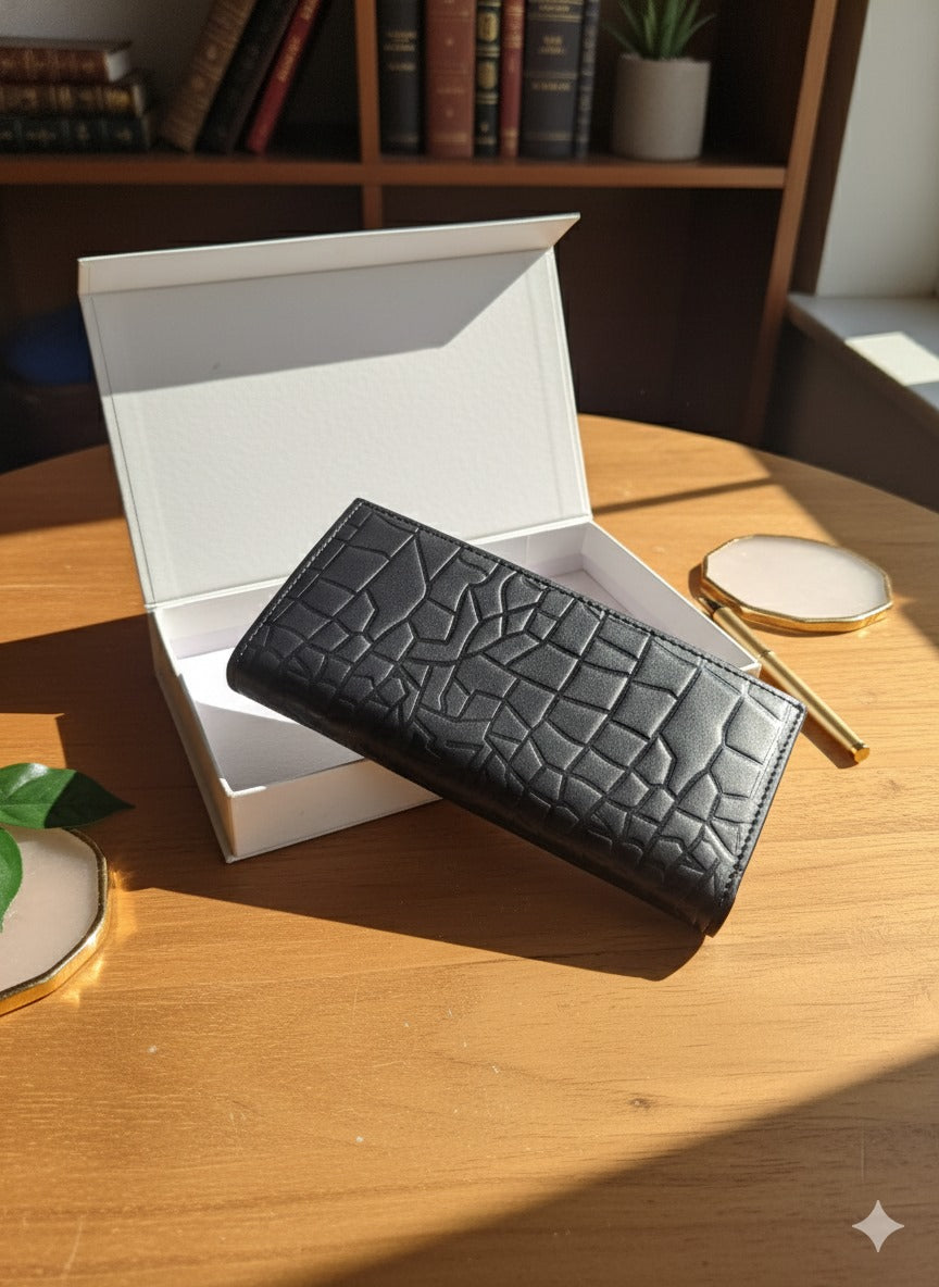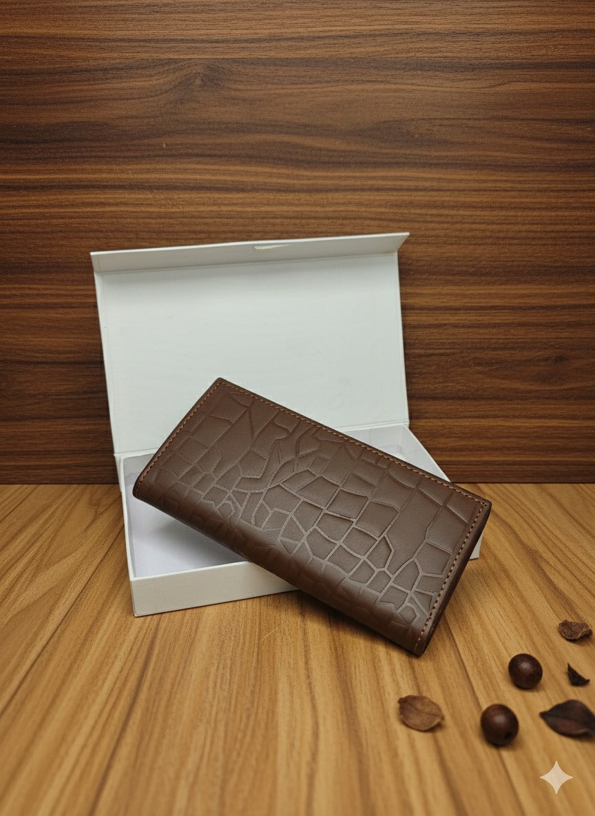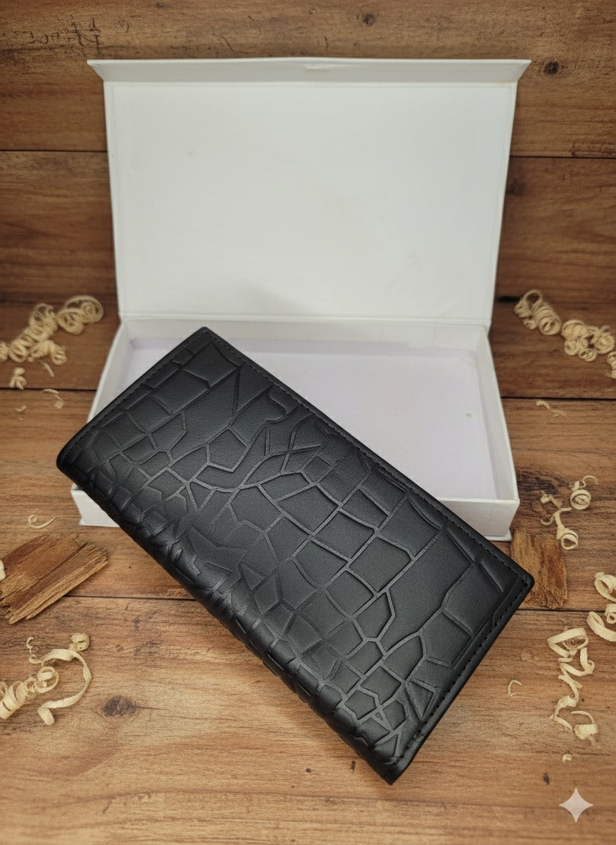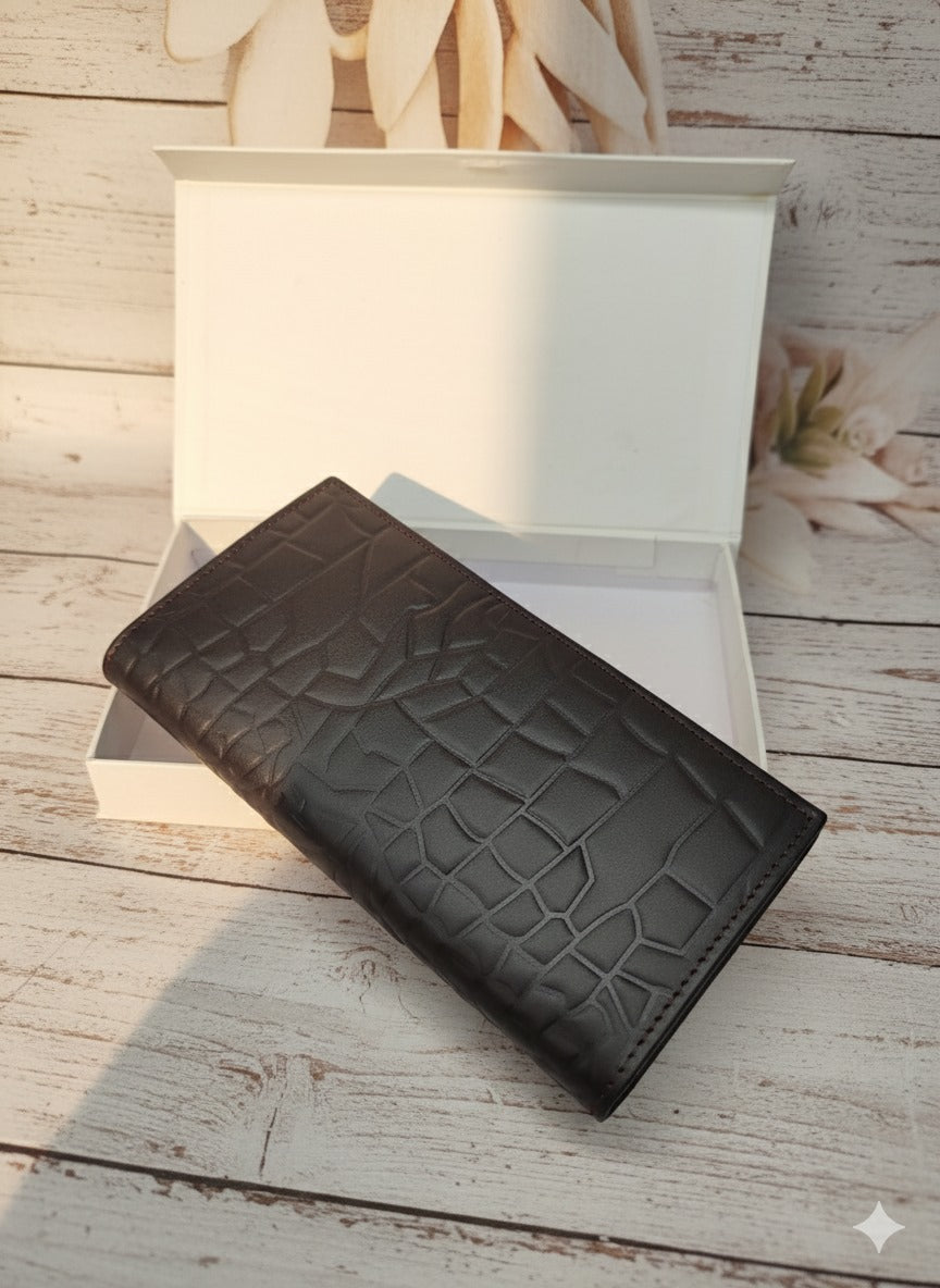 The Jaraan LuxeSlate long wallet is crafted for men who appreciate refined style with a bold, modern edge. Featuring a distinctive geometric textured pattern, this wallet blends sophistication with durability—making it a standout accessory for both daily use and formal occasions.